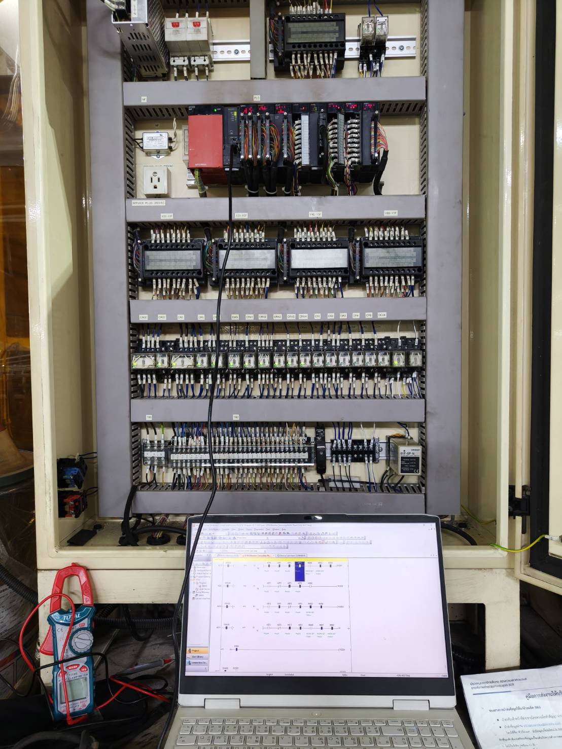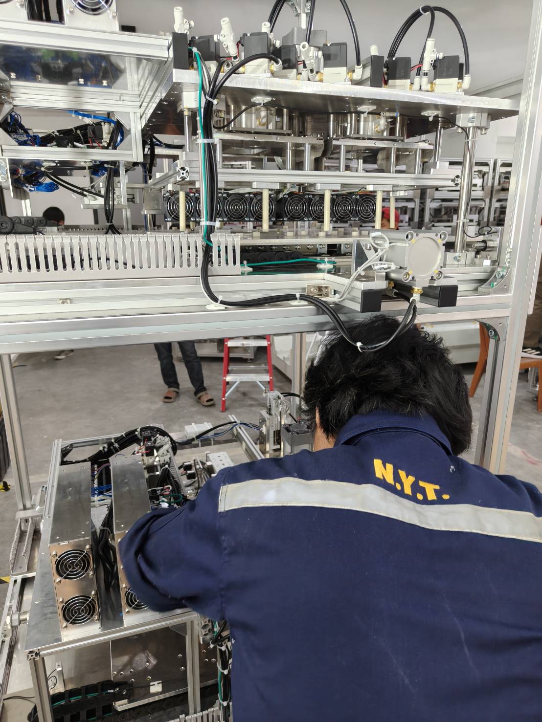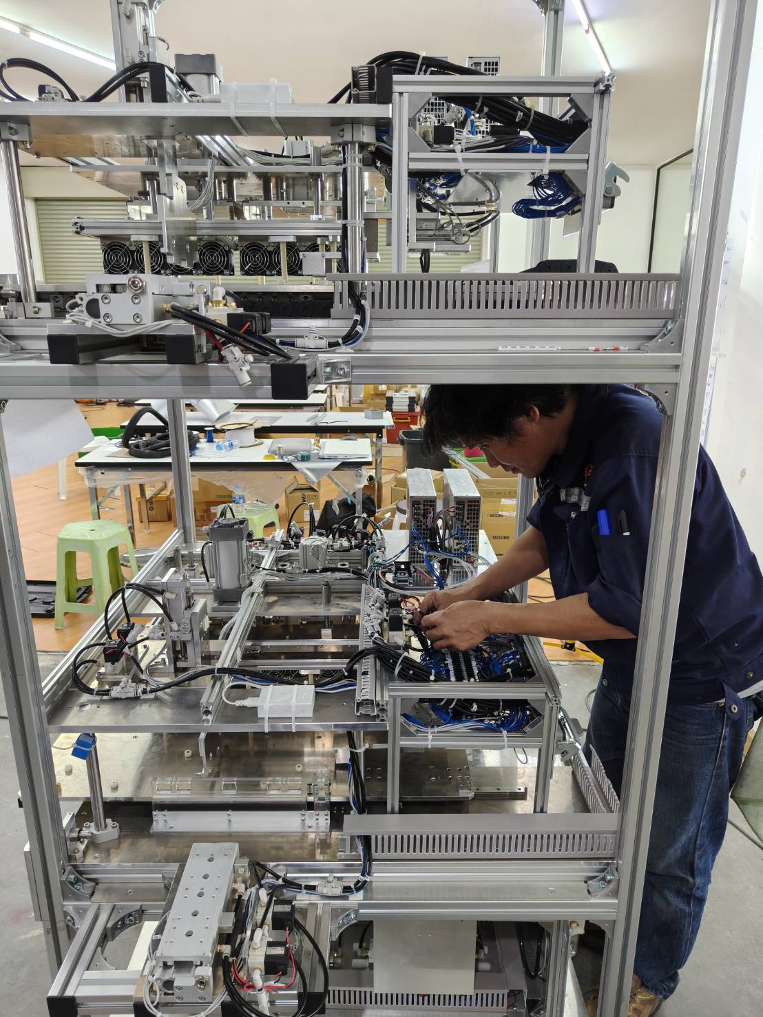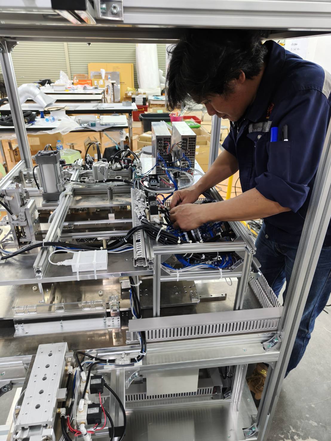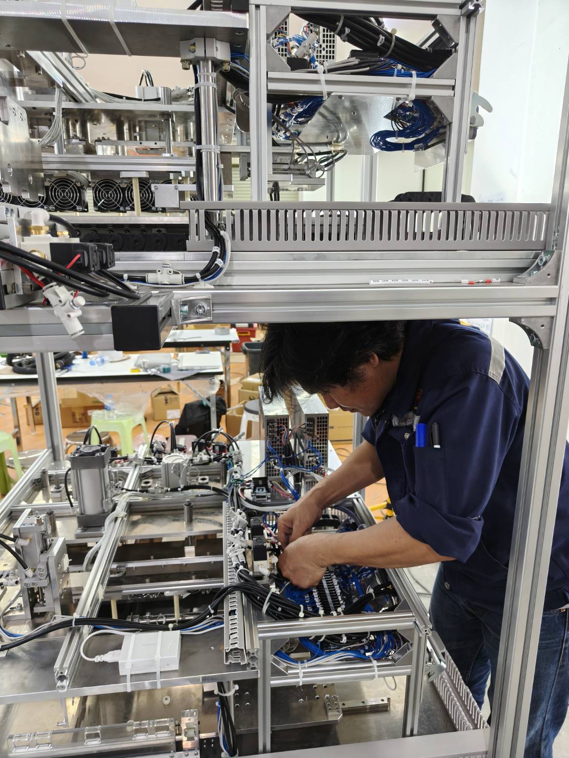Wiring work for machine control systems and machine control programming.